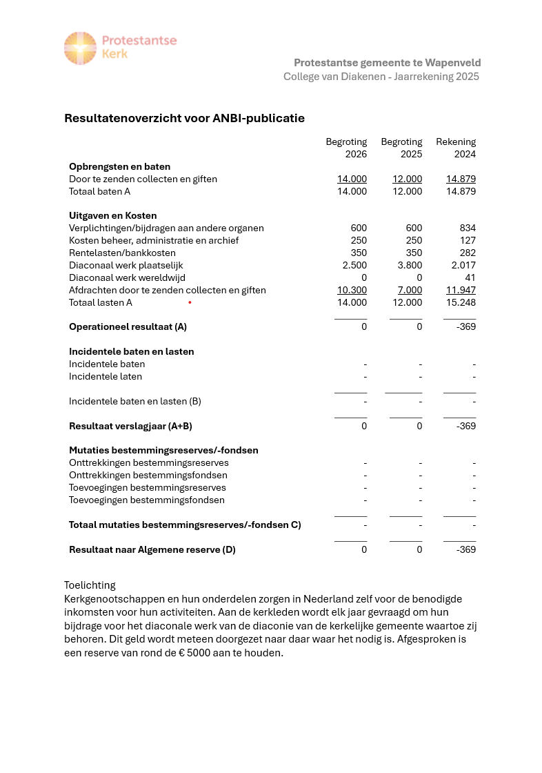Publicatie gegevens in het kader van de ANBI-transparantie door de diaconie van de Petruskerk te Wapenveld behorende tot de Protestantse Kerk in Nederland.